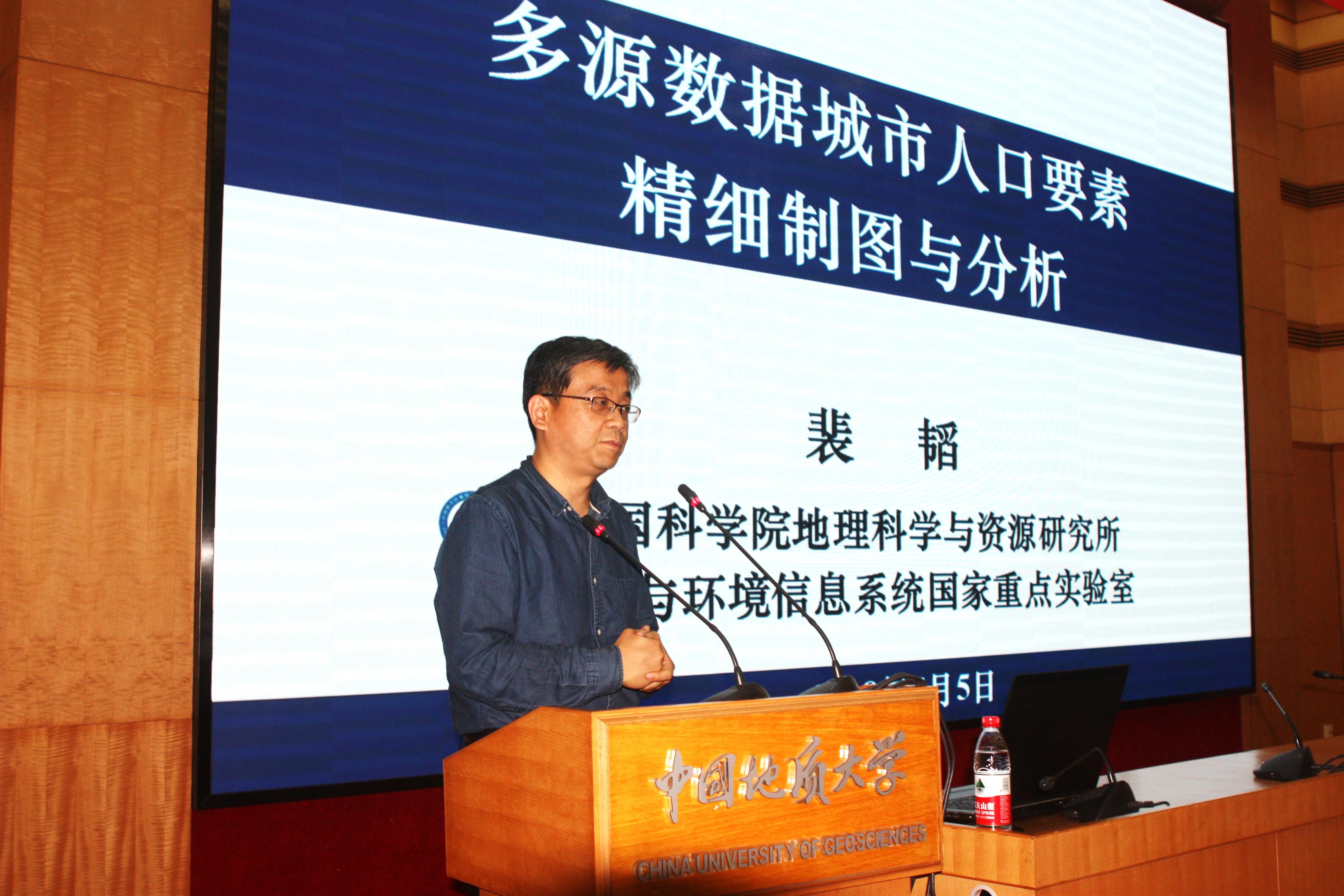 裴韬研究员报告的题目是“多源数据城市人口要素精细制图与分析”,在报告中他清晰地阐述了社会活动大数据与对地观测大数据之间的关系,并应用人口分布、人口通量等人类活动数据展示了城市人口要素精细制图在城市区划、公共安全、设置选址、交通规划等领域应用。给出的应用实例包括:基于多源数据可进行城市精细人口分布和通量的估算,并可用于选址等实践;个体的活动在不同尺度和时间范围下具有不同的范围,显示了城乡过渡带的特征;基于多源数据可预测城市人口动态变化,并可制定人群疏散风险的分级等。他指出多源数据精细制图的关键在于轨迹的重构、面积单元转换与多源数据聚合。