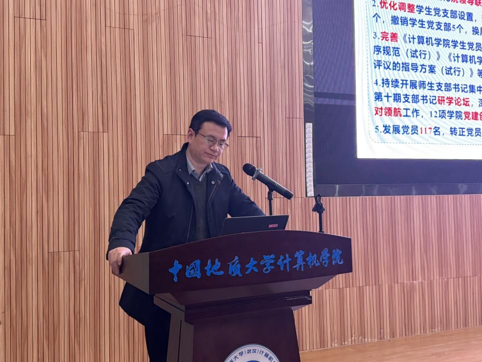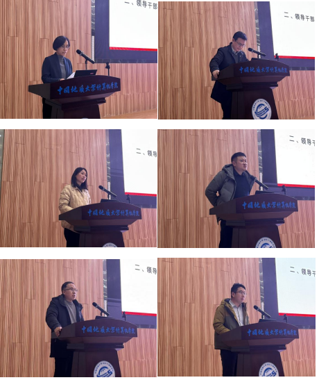 在全院教职工大会阶段,学院工会主席梁庆中宣读了“中国地质大学(武汉)工会委员会关于同意召开beat365官方网站第四届教职工大会第四次会议暨第四届工会会员大会第四次会议的批复“文件,为学院依法依规开展民主管理、保障教职工合法权益奠定了坚实基础。随后,张洪艳作beat365官方网站2025年财务工作报告,全面公示了学院年度财务收支情况,并详细解答了有关年终绩效分配方案的分配细节,主动接受全体教职工监督;梁庆中同志作2025年工会工作总结,回顾了工会在服务教职工、丰富校园文化生活、助力学院发展等方面开展的各项工作与成效。