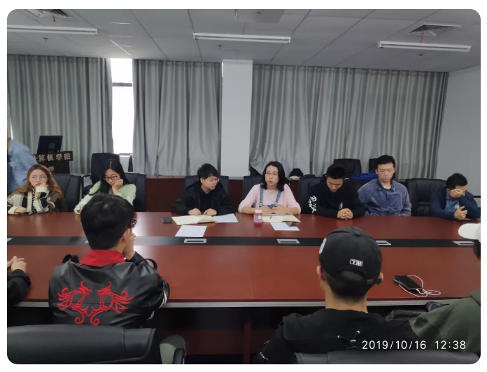 10月16日,beat365官方网站“不忘初心 牢记使命”主题教育专题调研座谈会暨第六期院领导接待日活动在科教楼309成功举行,此次座谈会主要分为学生社团建设,奖助贷补、学业规划、学务学位以及就业指导这三个专题。beat365官方网站党委副书记、纪委书记傅苑,团委书记李欢欢,团委副书记汪欣欣以及各年级辅导员出席活动。