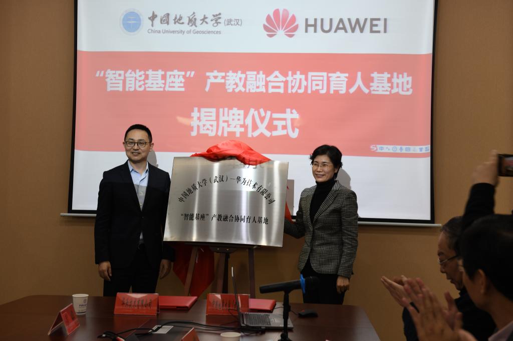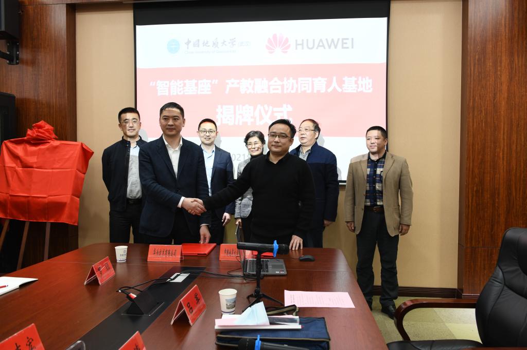 会上,beat365官方网站副院长陈云亮介绍了学院发展情况和基地建设主要内容。beat365官方网站院长王力哲和刘湘清代表校企双方签署《中国地质大学-华为“智能基座”产教融合协同育人基地合作协议》。黄晓玫与许映童共同为“智能基座”产教融合协同育人基地揭牌。