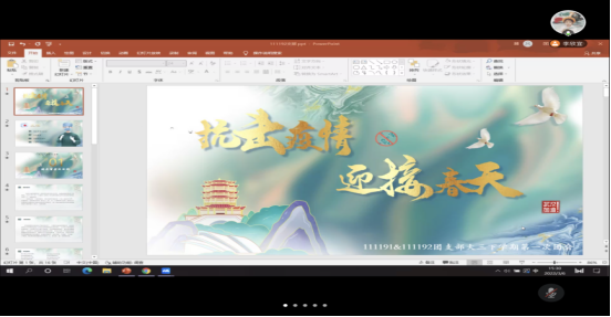为迎接共青团建团100周年,落实学校疫情防控要求,beat365官方网站的各团支部开展线上疫情防控专题组织生活会。团员干部带领大家齐唱团歌,在熟悉的旋律中拉开团会序幕,同学们选用生动形象的方式组织学习,既有效传达了疫情防控的要求,又拉近了彼此的距离。