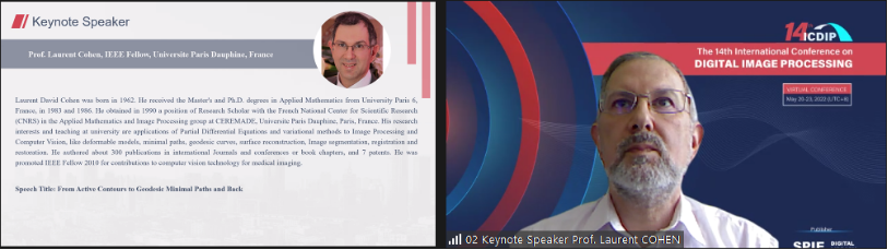 由中国地质大学(武汉)beat365官方网站主办的第十四届数字图像处理国际会议(ICDIP 2022)于2022年5月20-23日成功举办线上会议。本次会议共有来自英国、法国、美国、日本、澳大利亚、希腊、印度、阿根廷等国以及中国香港,北京、上海、陕西、辽宁、浙江、湖北和湖南等地的27位专家陆续分享了他们在数字图像处理等领域的最新研究成果。国内外专家和学者围绕图像质量和图像安全、图像分类与算法、图像分割、光学成像和系统、数字图像处理与应用、三维模型与图像重建等16个主题,进行了广泛而深入的学术交流与研讨。