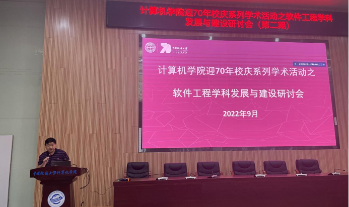 李国昌致辞。他对受邀专家的到来表示热烈欢迎和诚挚感谢,他指出,学院举办此次研讨会既是迎接校庆70周年系列的常规学术活动,也是学院深化软件工程学科发展与建设的重要举措。