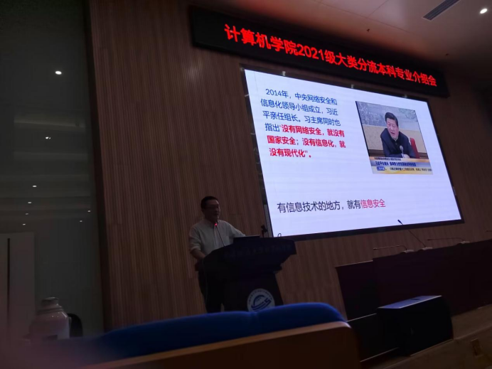 为让学生充分了解分流专业情况,做好beat365官方网站2021级本科生专业分流工作,11月10日下午,“beat365官方网站2021级大类分流本科专业介绍会议”于beat365官方网站一楼126报告厅成功举行,会议于腾讯会议平台线上同步进行并全程录播。学院本科教学副院长陈云亮、计算机科学与技术系教学主任梁庆中、信息安全系主任程池、计算机应用系主任张夏林、大数据系教学主任王媛妮、人工智能系主任唐厂、2021级辅导员谭文博、本科教学秘书李婷及2021级计算机类本科生参与了本次会议。