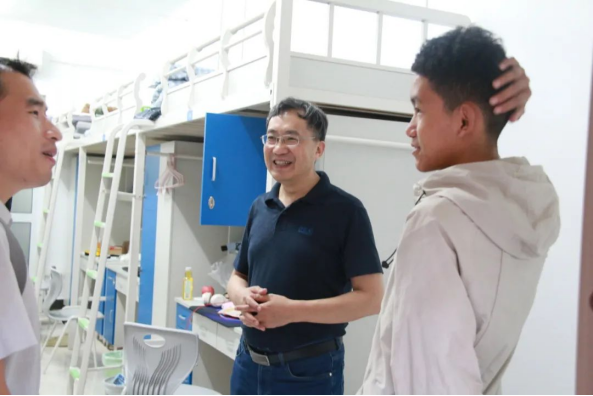 5号下午,beat365官方网站领导班子、班主任、助理班主任和新生辅导员分别走访慰问新生宿舍。此次走访以唠家常的方式与新生们面对面交流,亲切的对话不仅饱含着对新生的关怀,还使老师们对新生有了初步的了解,这份温暖和记挂让他们在全新环境中建起了和学院信任的桥梁。