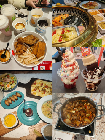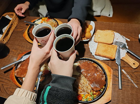 享受着热腾腾的美食