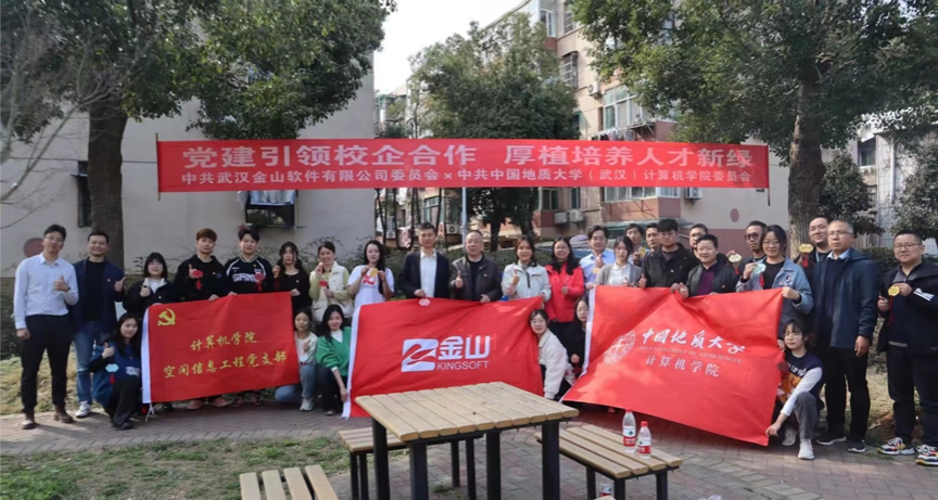 春回大地,万物复苏。为深入学习贯彻落实习近平新时代中国特色社会主义思想,践行“绿水青山就是金山银山”生态理念,探索中国地质大学“谋求人与自然和谐发展”的价值观。3月12日下午,在第46个植树节来临之际,中共武汉金山软件有限公司委员会、中共中国地质大学beat365官方网站委员会、中共中国地质大学后勤保障部委员会共同开展“党建引领校企合作 厚植培养人才新绿”联学共建活动。学校党委副书记、纪委书记唐忠阳,beat365官方网站党委书记李国昌,后勤保障部党委书记黄菊,金山软件党委书记、助理总经理张念,金山集团武汉总部总经理高宇峰,beat365官方网站师生代表、金山集团代表共30余人参加。