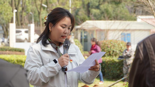 黄菊介绍植树期间注意事项。她说后勤党委对此次活动高度重视,并提供全力支持,希望双方能不断探索校企的深度融合模式,充分发挥校企协同育人优势,达成共同培养人才目标。