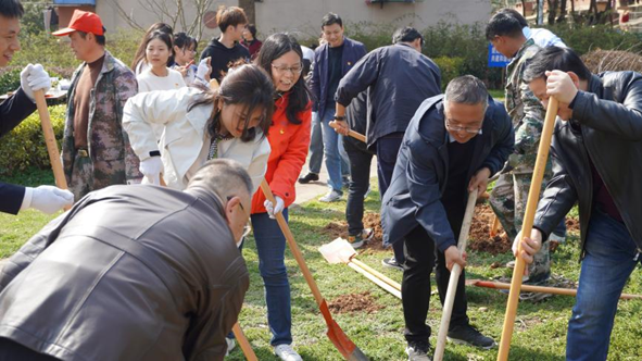昨天是植树节,在这个特别的日子里,我有幸与我们学院党委领导以及金山集团武汉总部领导共同参与到校园植树活动中。阳光下,我们挥锹撒土,亲手植下一棵棵新苗,每一颗嫩芽都寄托着我们对于绿色未来的希望。在植树活动结束后,我们又参与制作了微型盆栽。这个过程不仅锻炼了我们的动手能力,更是让我们感受到了与自然亲密接触的乐趣。随后,我们参观了校史馆,那些珍贵的照片和文献让我们更加珍惜身边的绿色环境,并对学院深厚的历史文化传承充满敬意。这一天的经历让我深刻体会到,绿色不仅是大自然的颜色,更是我们每个人心中的底色。植树节不仅仅是种植树木,更是播种绿色理念,让我们行动起来,从点滴做起,为创建一个更加和谐的生态环境贡献自己的力量。
