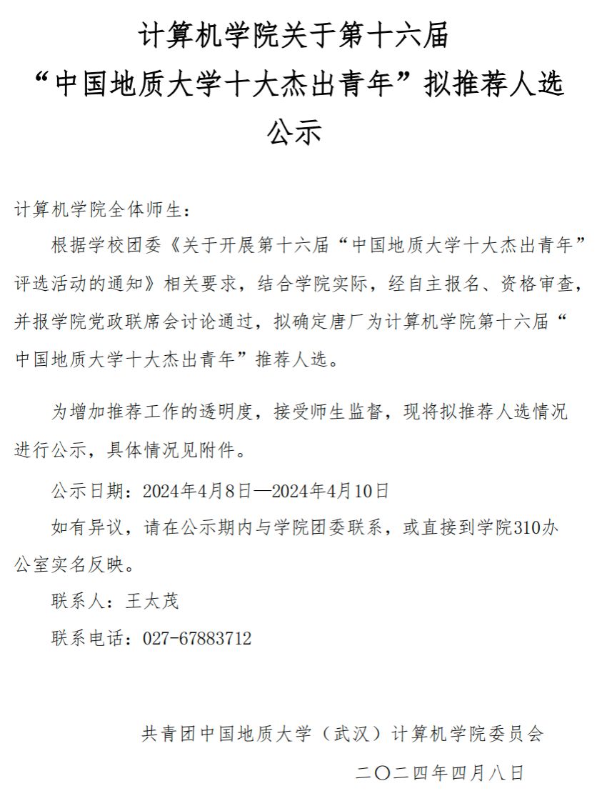 beat365官方网站关于第十六届“中国地质大学十大杰出青年”拟推荐人选公示