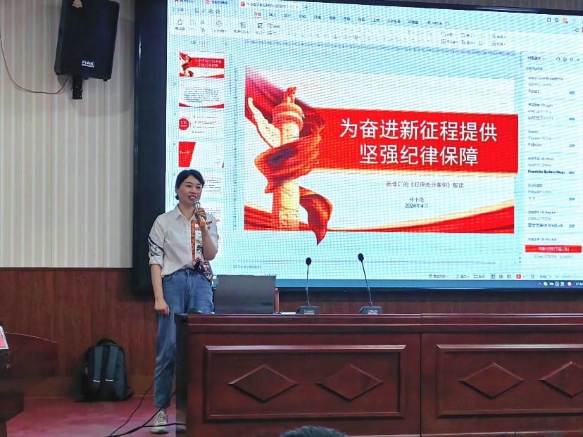林小艳认为,贯彻执行新修订的党纪处分条例要真抓实干、善作善成。党员干部要切实担负起全面从严治党的政治责任,以身作则,坚决杜绝违规违纪踩“红线”、越“底线”、闯“雷区"的行为。她结合科研经费违规使用、教师学术不端、把关学生不严等案例,重点解读了与高校教师党员密切相关的条例内容,以案明纪,以案示警。