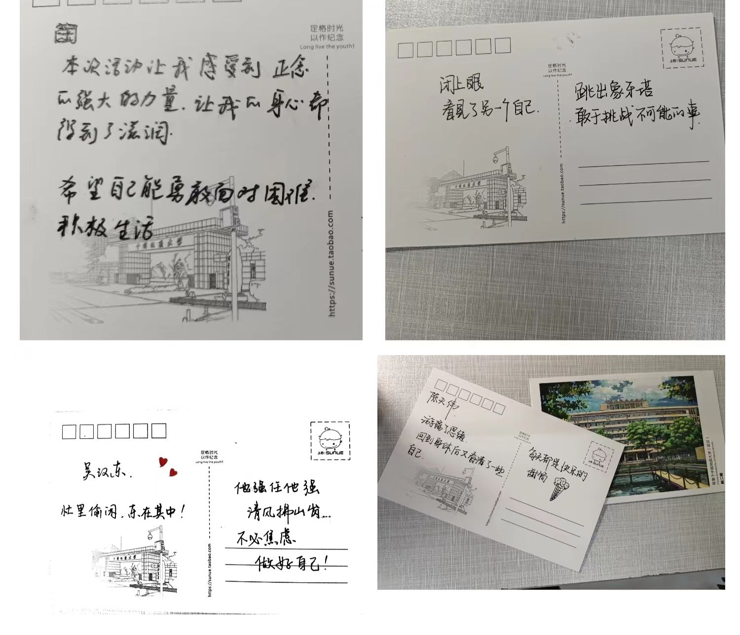 活动最后,闫维蓉给每位同学发了明信片,让同学们写下对此次活动的感受以及想对自己说的话。同学们拿起笔在明信片上记录,字里行间不仅是对活动的感受和未来展望,更是对自我认识的深化和激励,坚信CSer终将实现明信片中的美好祝愿。