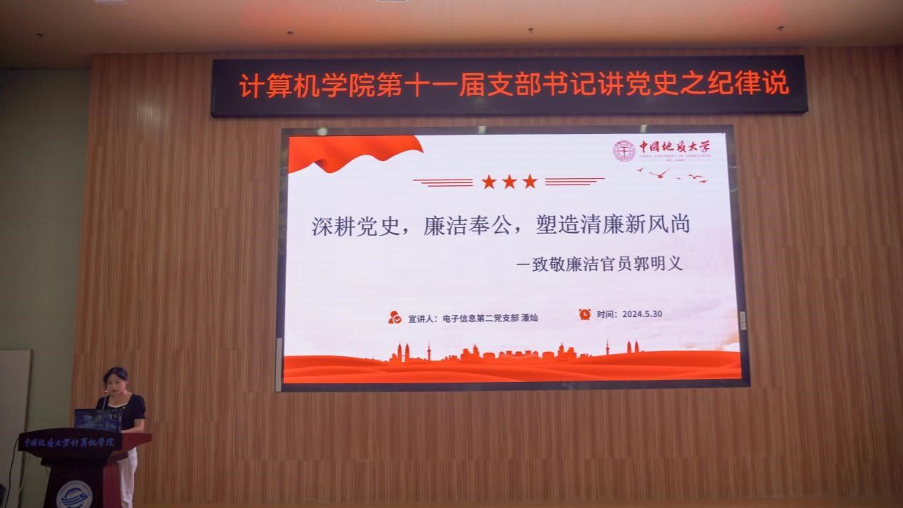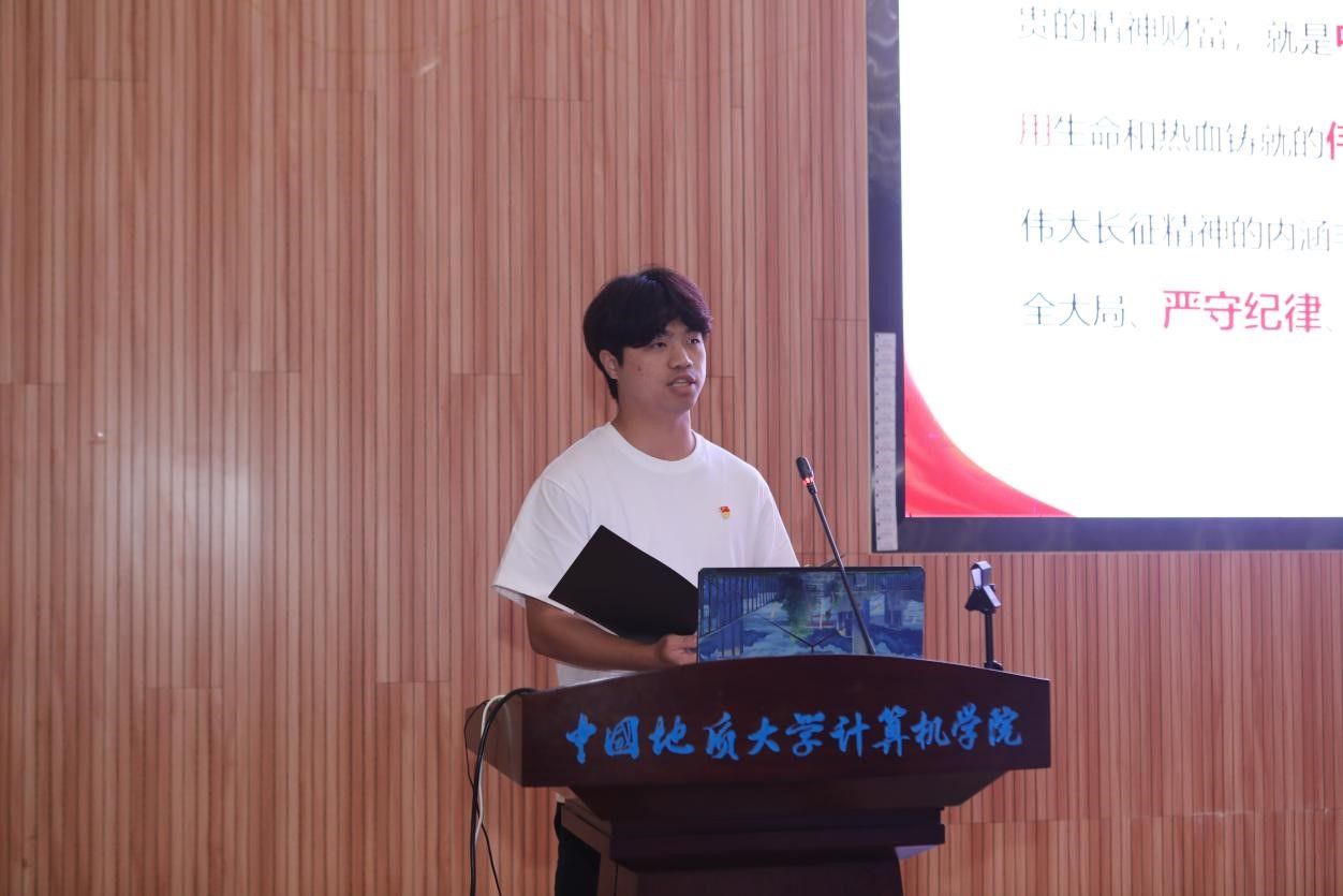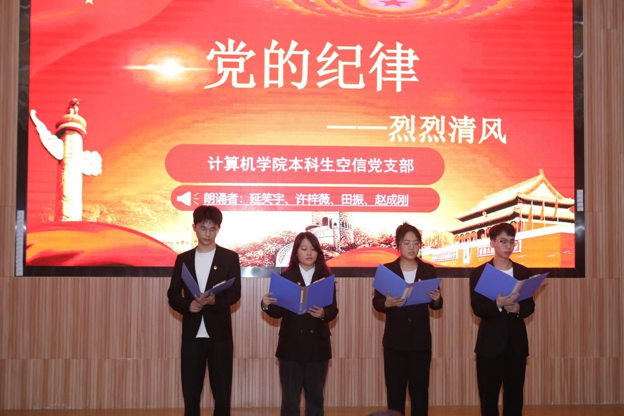活动在雄壮的国歌声中拉开帷幕。学生党支部书记率先登场。电子信息第三党支部朱国强以刘邓大军的严明军纪为例,强调了纪律在军队建设中的重要作用。本科生信安党支部郭鹏顺则从新民主主义革命时期的党纪建设出发,强调了坚守初心、严明纪律的意义。本科生空信党支部延笑宇等多名成员以“党的纪律:烈烈清风”为题的诗歌朗诵,声情并茂地展现出对党廉政建设的歌颂。本科生计科第一党支部王诗敏则以延安廉政的故事为蓝本,深入剖析了党在推动廉政反腐方面的必要性和坚定决心。电子信息第二党支部潘灿通过讲述郭明义的故事,展现了廉洁奉公、无私奉献的崇高精神。电子信息第一党支部胡长浩深刻阐述了铁纪在长征这一伟大的历史事件中的关键作用。在beat365官方网站空间信息工程党支部与经济管理学院生态文明研究生样板党支部成员的精心编排下,以一场独具特色的话剧将现场气氛推向了高潮,生动诠释了“亲民爱民、艰苦奋斗、科学求实、迎难而上、无私奉献”的“焦裕禄精神”。