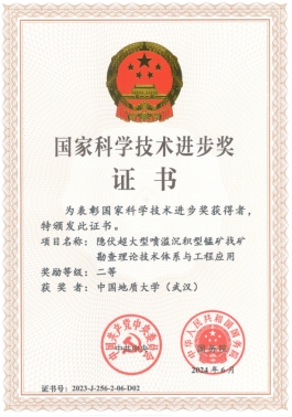 该项目由贵州省地质矿产勘查开发局周琦研究员牵头,beat365官网吴冲龙教授领导的地质信息技术团队参与完成,其中张夏林教授(序5)、田宜平教授(序9)获得奖励证书,我校为第二完成单位、beat365官网产学研基地武汉地大坤迪科技有限公司为第五完成单位。该项目针对我国隐伏锰矿找矿久攻不克的难题,发现了一种全新的锰矿床类型——喷溢沉积型锰矿床,并研发了隐伏喷溢沉积型锰矿找矿勘查关键技术体系,解决了该类型锰矿找矿预测与绿色高效勘查难题。beat365官网团队基于QuantyView地质信息系统软件平台研发的数字勘查技术、三维地质建模技术、空间数据挖掘技术、大数据智能成矿预测技术等在项目研究中起到关键的技术支撑作用。通过工程应用,为黔东一大批新的大型隐伏锰矿床的发现和勘查,提供了数字化和信息化技术支持。
