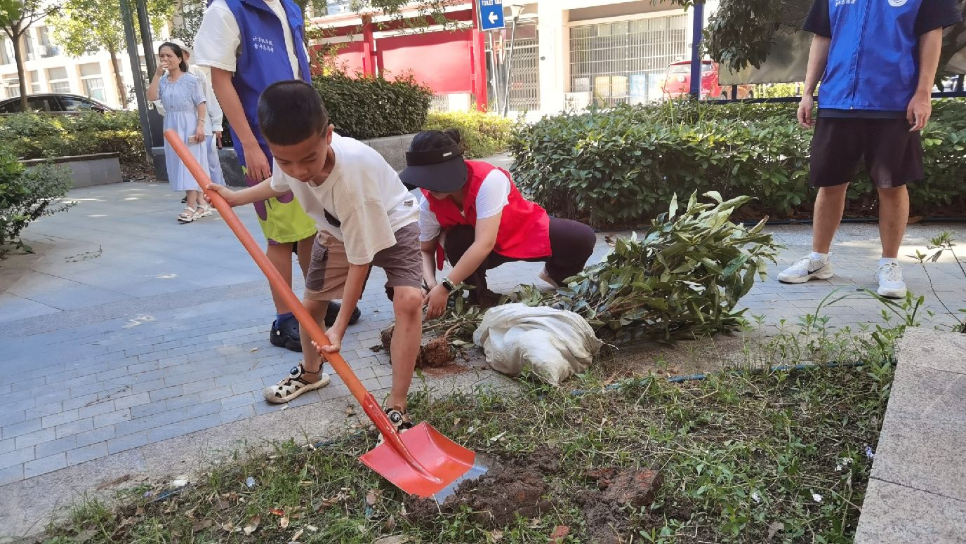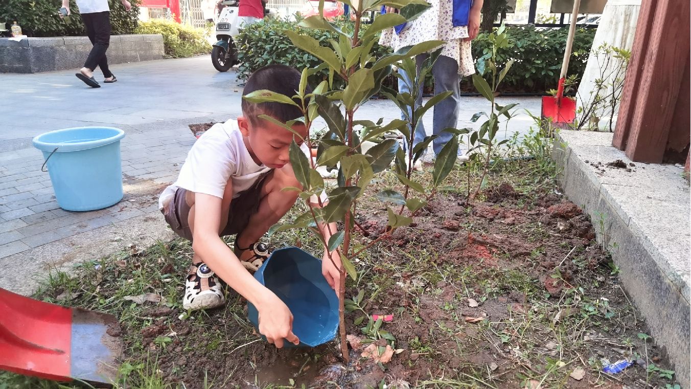 小朋友们昂扬的热情就如七月的阳光,纯粹而炙热个个争当社区绿化的小小美容师。