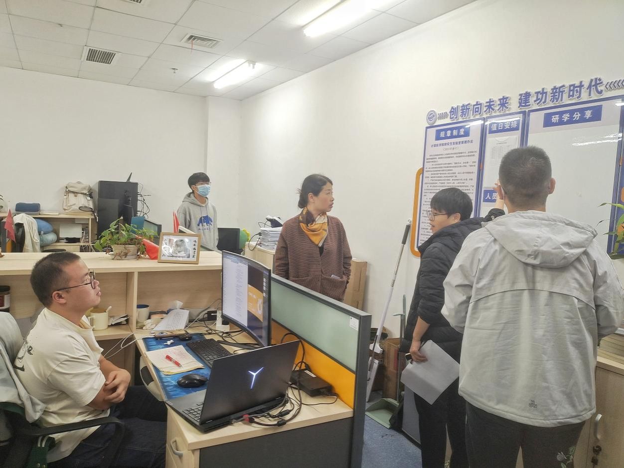 为深入推进研学空间建设,增强研究生安全教育管理,学院于2024年10月24日下午,开展第65期“我的实验室我呵护”实验室走访活动,beat365官方网站副院长胡成玉、党委副书记林小艳、研究生辅导员李欢欢和研究生秘书黄果走访全院46间研究生实验室,了解同学们的科研进展和学习状态,巡查实验室安全卫生和日常管理情况。
