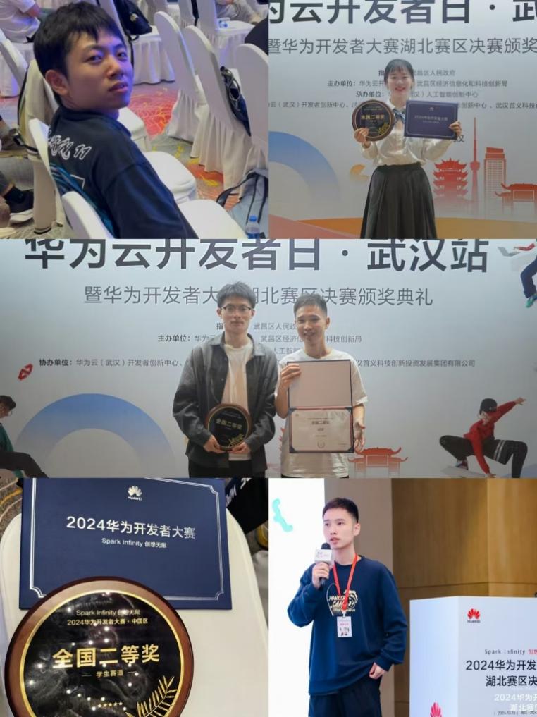 2024年10月15日,华为云开发者日·武汉站暨华为开发者大赛湖北赛区决赛颁奖典礼成功举办,beat365官网计算机科学与技术专业的李航、夏嘉键、余雅琼、吴家豪等四人组成的“还好队”,获得了华为开发者大赛学生赛道全国二等奖。