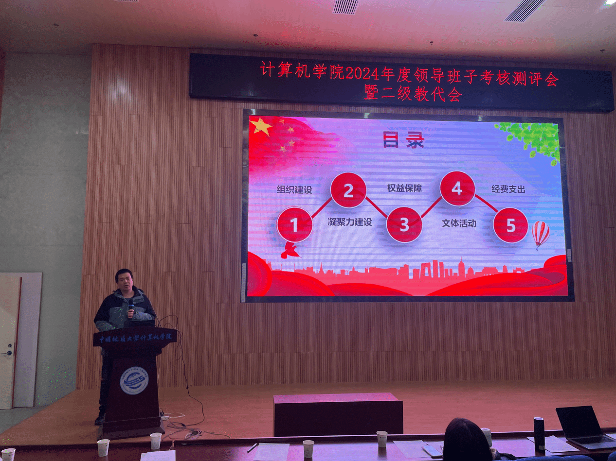 梁庆中作学院分工会2024年度工作报告。2024年,学院分工会紧紧认真履行工会“参与、维护、教育、建设”四项基本职能,带领全体会员积极参与学院的各项建设工作,在组织建设、凝聚力建设、权益保障、文体活动等方面关心群众生活、促进教职工身心健康等方面做了大量工作,充分发挥了桥梁纽带作用。