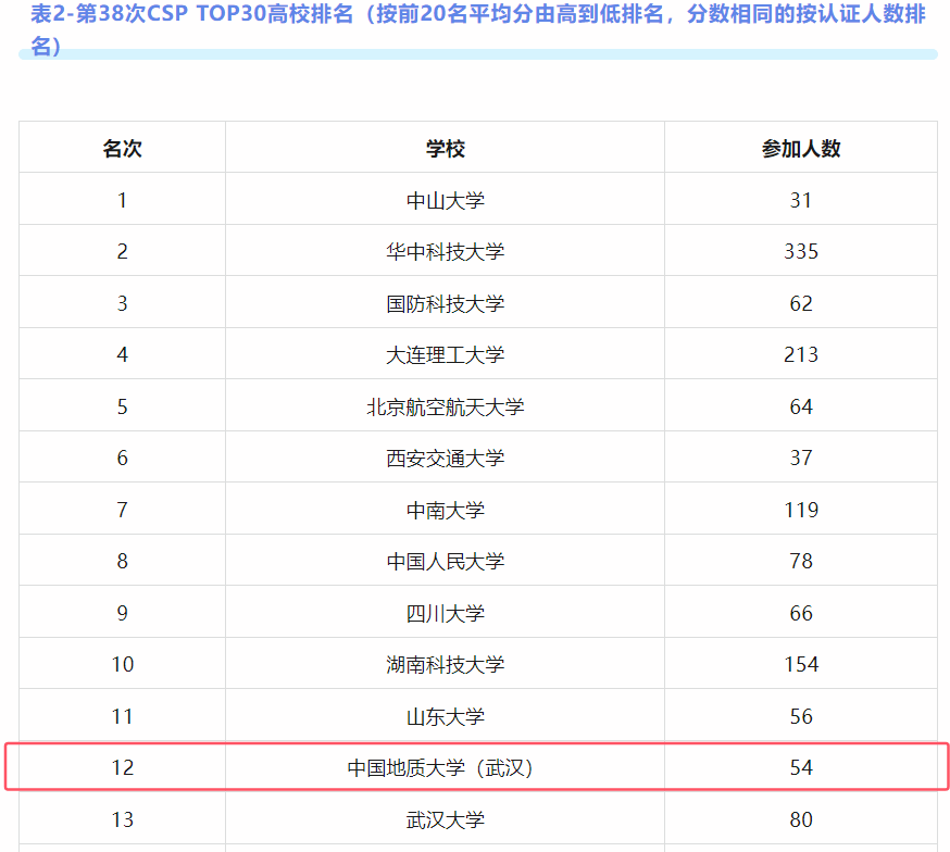 据悉,此次认证共有来自全国207个高校的4907人参加。beat365官网共54人参加认证考试,其中300分以上达4人(CSP总分500分)。CCF对参加人数大于等于30人且2人及以上认证成绩达300分的高校进行了平均分排名,beat365官网排名第8。此外,CCF对每所学校排名前20同学的成绩进行了平均分排名,产生了CSP TOP30高校,beat365官网排名第12。