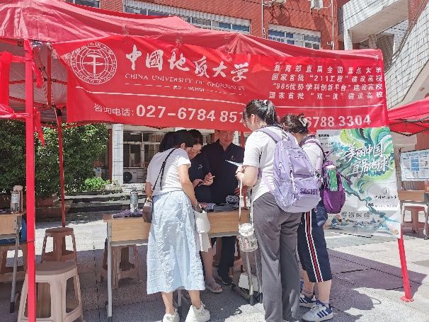 各招生宣传小组迅速行动,按照既定部署分赴安徽省和武汉市各地开展招生宣传。在咨询会现场,老师们早早地搭建好宣传展台,摆放好精心准备的宣传资料,热情开展招生宣传工作,详细介绍学校和学院的基本情况、招生政策和专业特色等。并针对考生和家长关心的录取分数线、专业设置情况、学习生活环境、升学及未来就业情况等问题,均一一进行了耐心、细致、热情地解答,让考生和家长更直观地了解学校、学院的办学实力和育人氛围。老师们表示热忱期盼各位考生报考地大,期待与大家在九月共启华章!