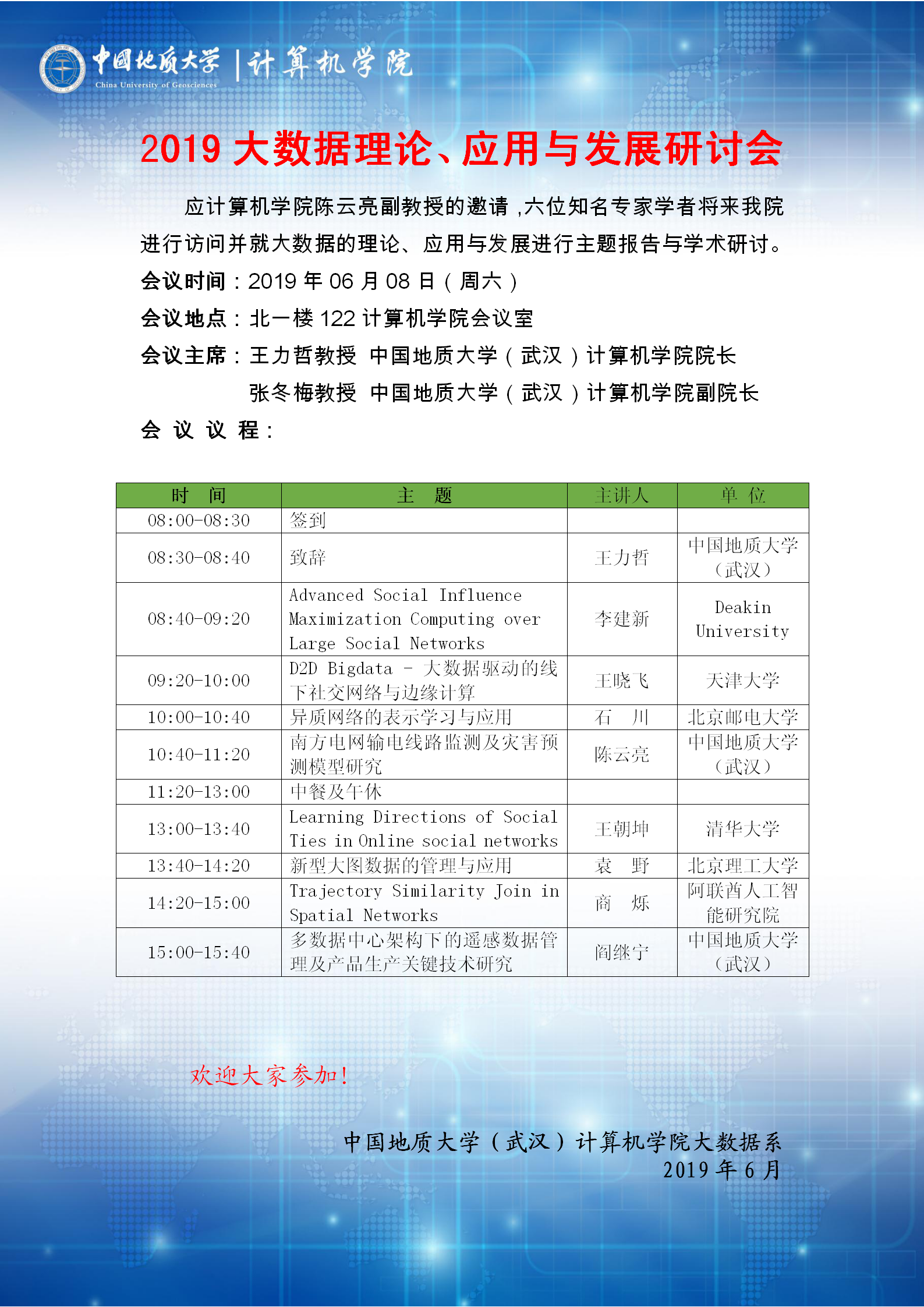 学术会议——2019大数据理论、应用与发展研讨会