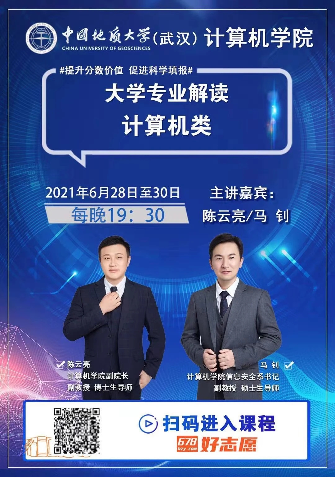 (通讯员孙彦钦)beat365官方网站专场招生宣讲和计算机专业解读直播将于6月20日15:30、19:00开讲。另外,自6月28日起至30日每晚19:30设有针对高考志愿填报的计算机专业解读直播,欢迎广大家长、学子扫码收看!