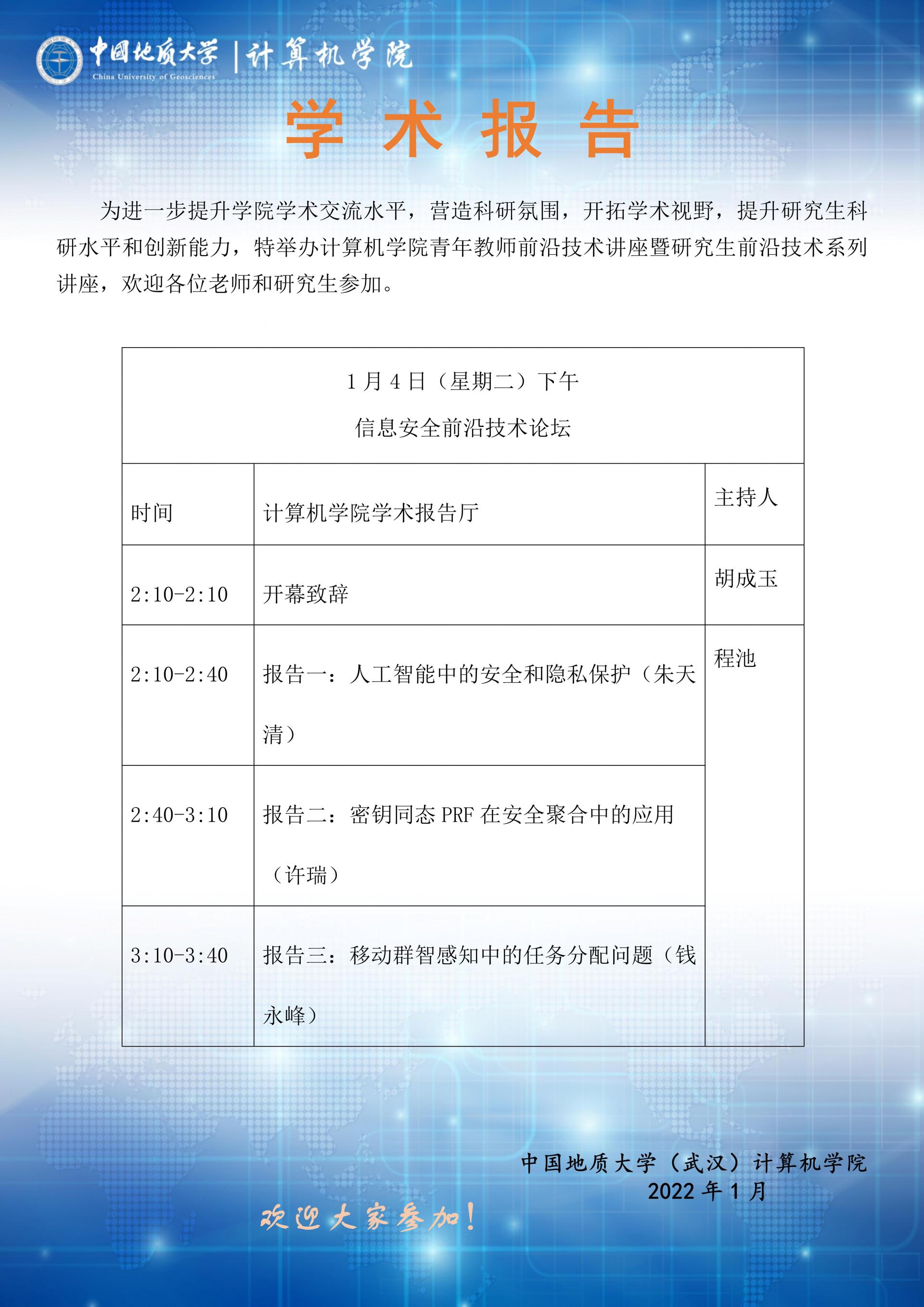 学术报告:信息安全前沿技术论坛