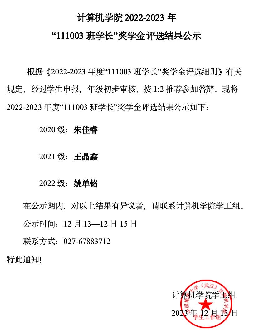 beat365官方网站2022-2023年 “111003班学长”奖学金评选结果公示