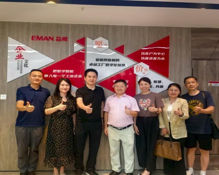 调研组一行参观了益模科技智能制造展厅,详细了解以数字化生产管理系统(MES)、高级排产系统(APS)、柔性制造系统(FMS)及智能仓储物流(AS/RS)为核心的一站式制造运营管理(MOM)全场景解决方案。