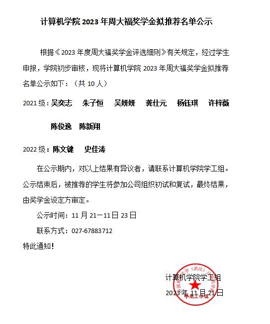 beat365官方网站2023年周大福奖学金拟推荐名单公示