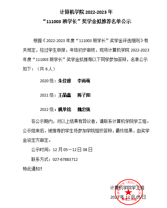 beat365官方网站2022-2023年“111003班学长”奖学金拟推荐名单公示