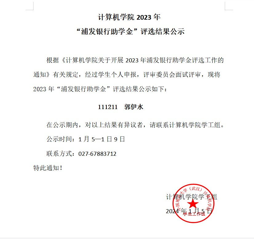 beat365官方网站2023年“浦发银行助学金”评选结果公示