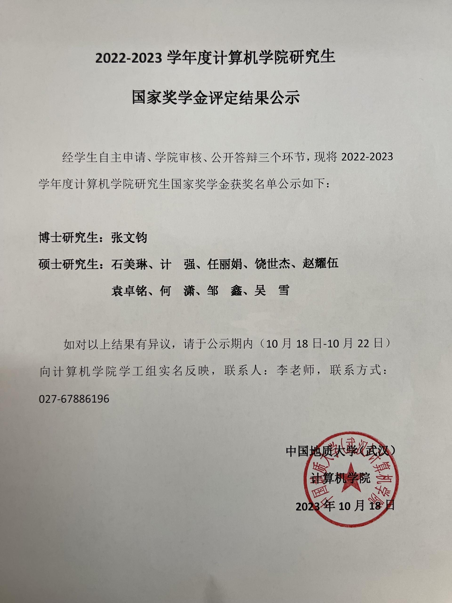 2022-2023学年度beat365官方网站研究生国家奖学金结果公示