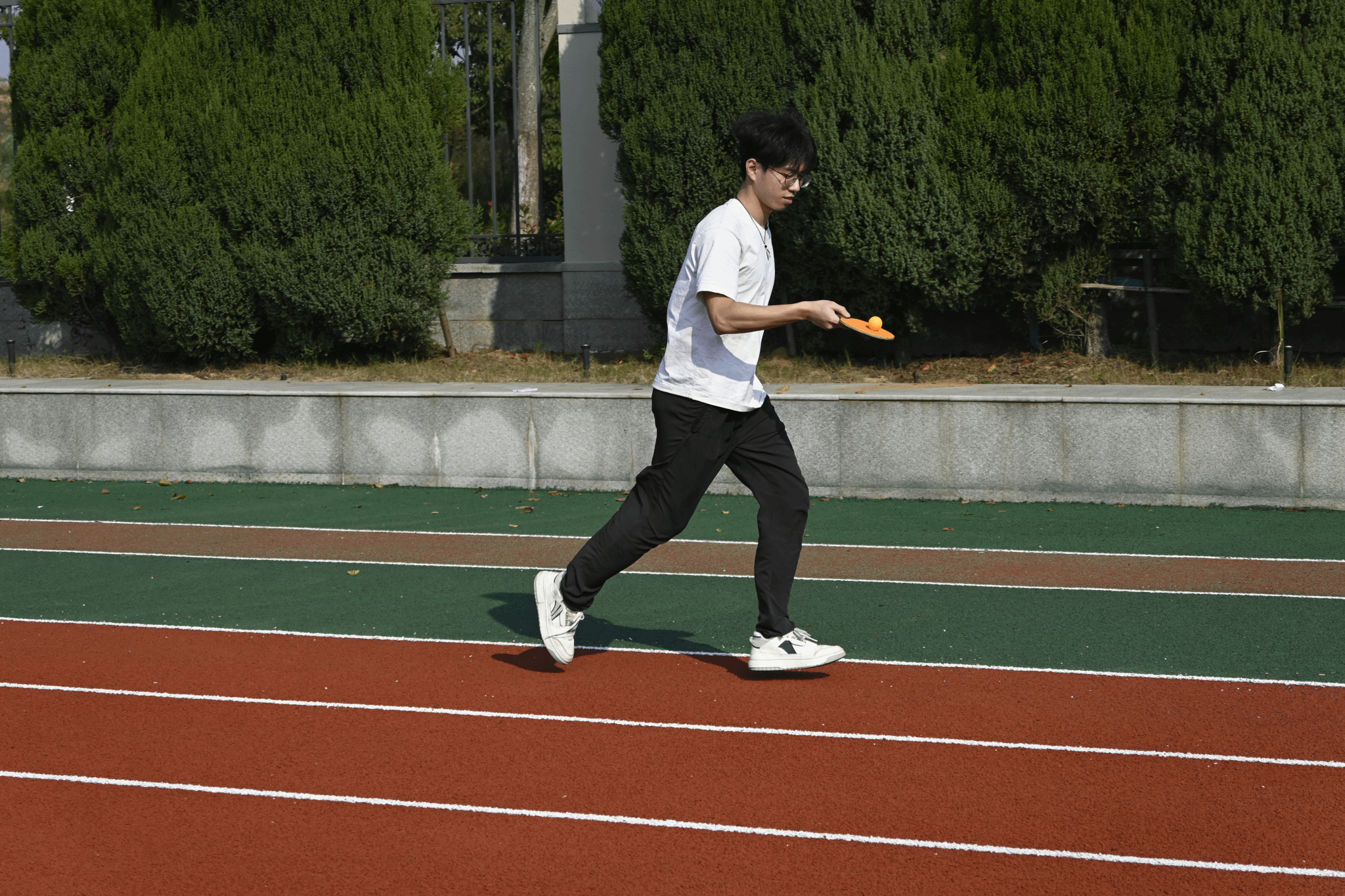 作为开场项目,一上场便引发阵阵欢呼。参赛同学手持球拍,小心翼翼地托举着旋转的乒乓球,在规定路线间快速穿梭。短短几分钟的比拼,考验的不只是速度,更是专注、稳定与节奏的完美配合。每一次顺利交接,都凝聚着队员之间的信任与默契。