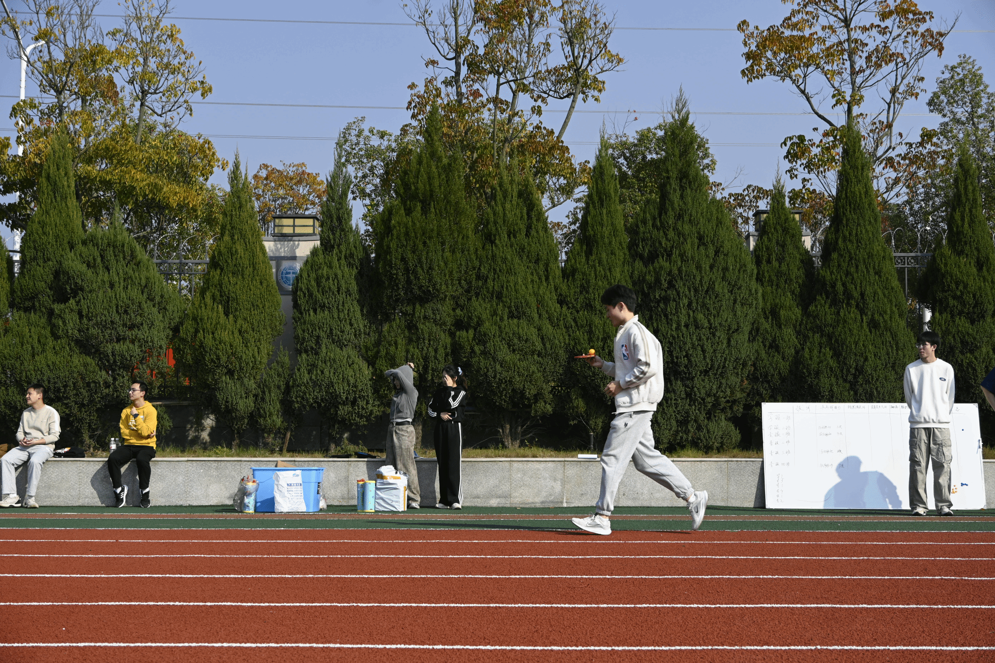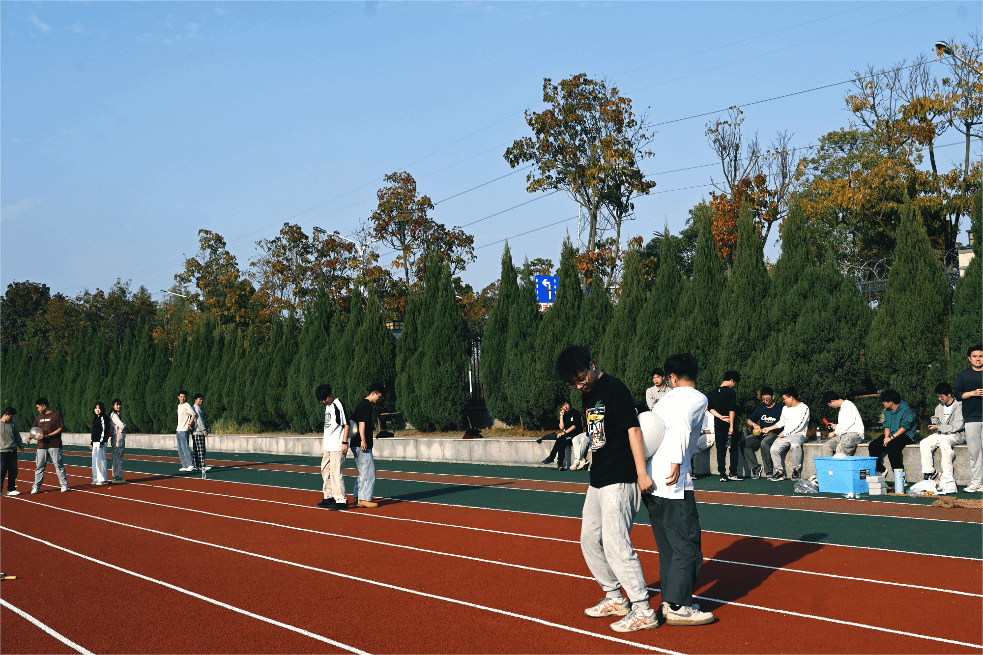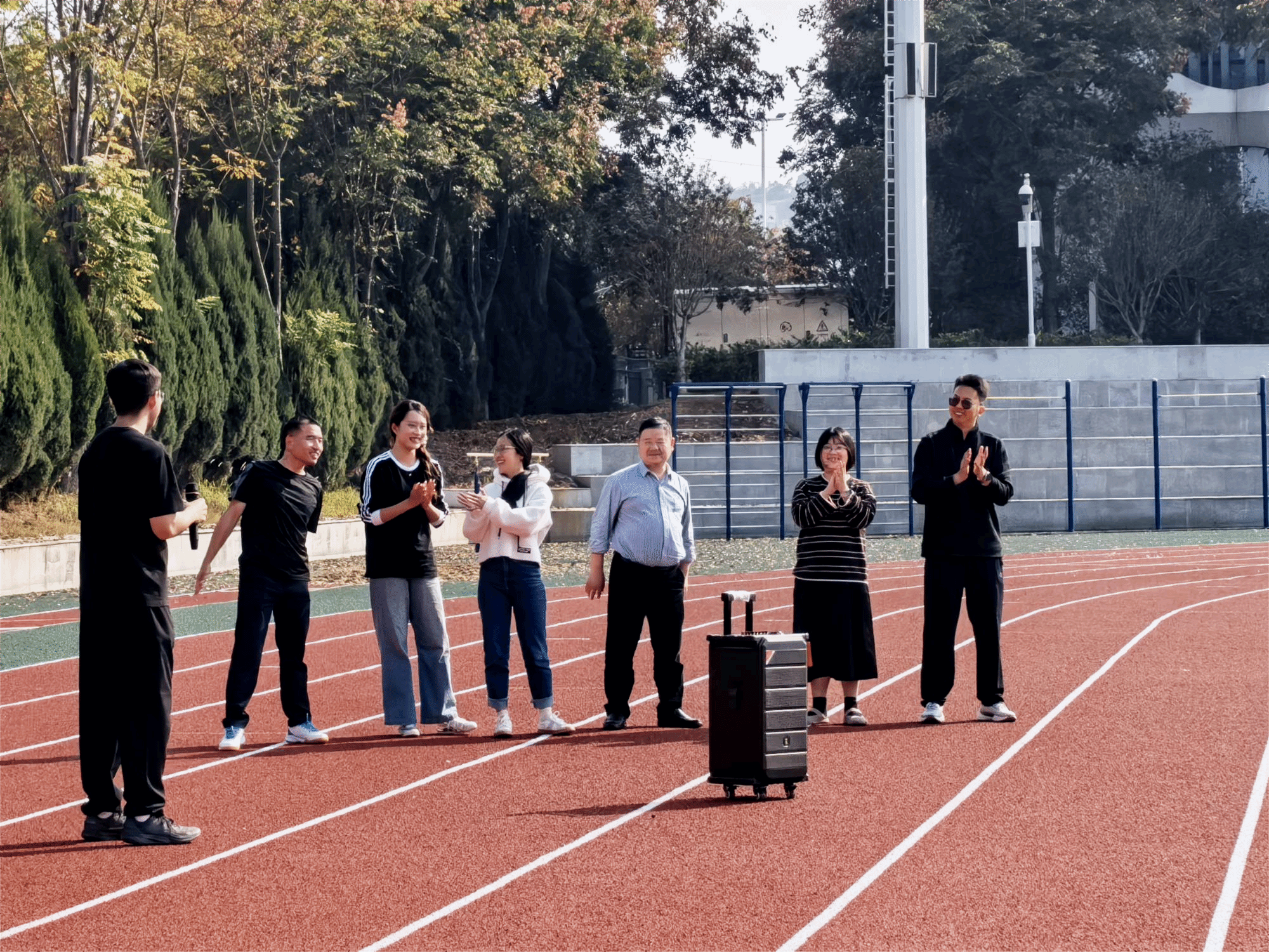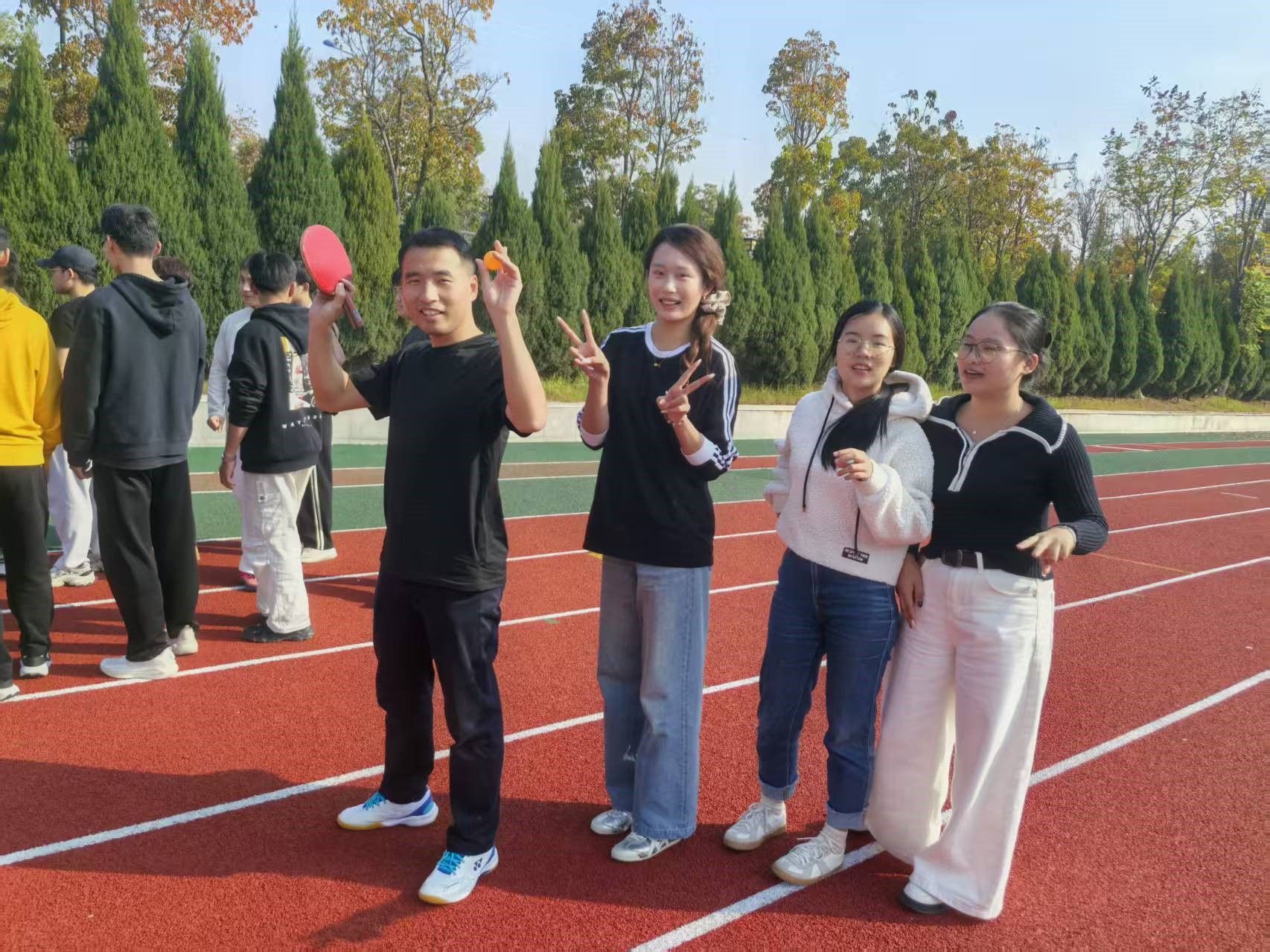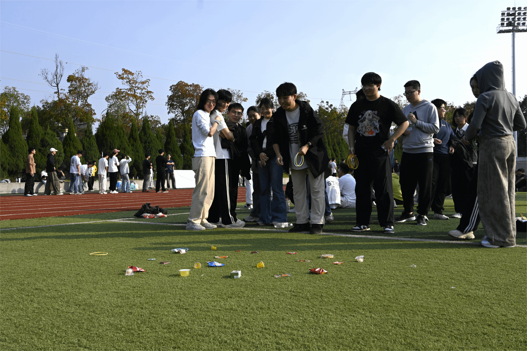 除了这些趣味十足的比赛,活动现场还设置了丰富的互动游艺环节。一个个小小的塑料圈、各式精美礼品和多样零食,吸引了师生们积极参与。在金秋的暖阳下,欢声笑语洋溢校园每一个角落,大家在轻松互动中感受了别样的欢乐与温暖。