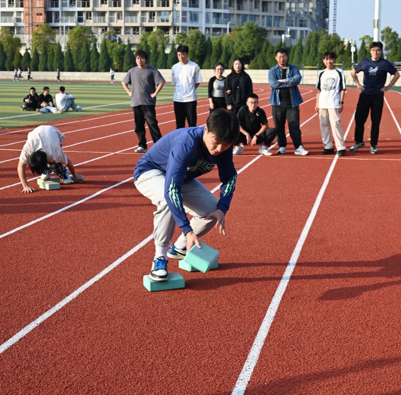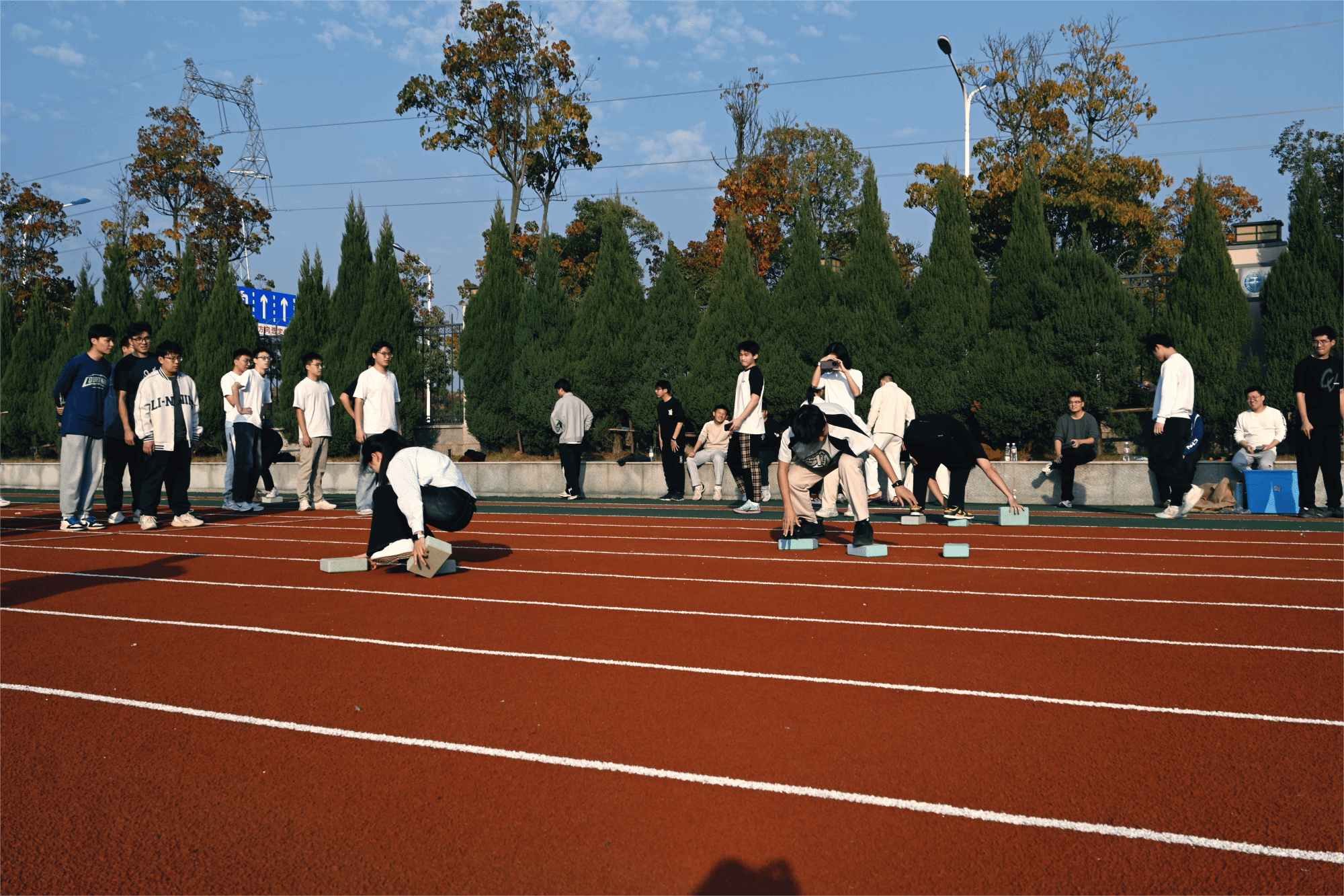 接着是颇具挑战性的“摸石头过河”。这项运动极其考验选手们的平衡感及协调性,大家小心翼翼地踩在“石头”上,调整步伐、保持平衡,每一步都相当专注。各班同学们在一旁鼓劲助威,彼此协作,确保顺利前进。整个过程充满策略与紧张感,既像一场冒险游戏,也像一次智慧与勇气的较量。