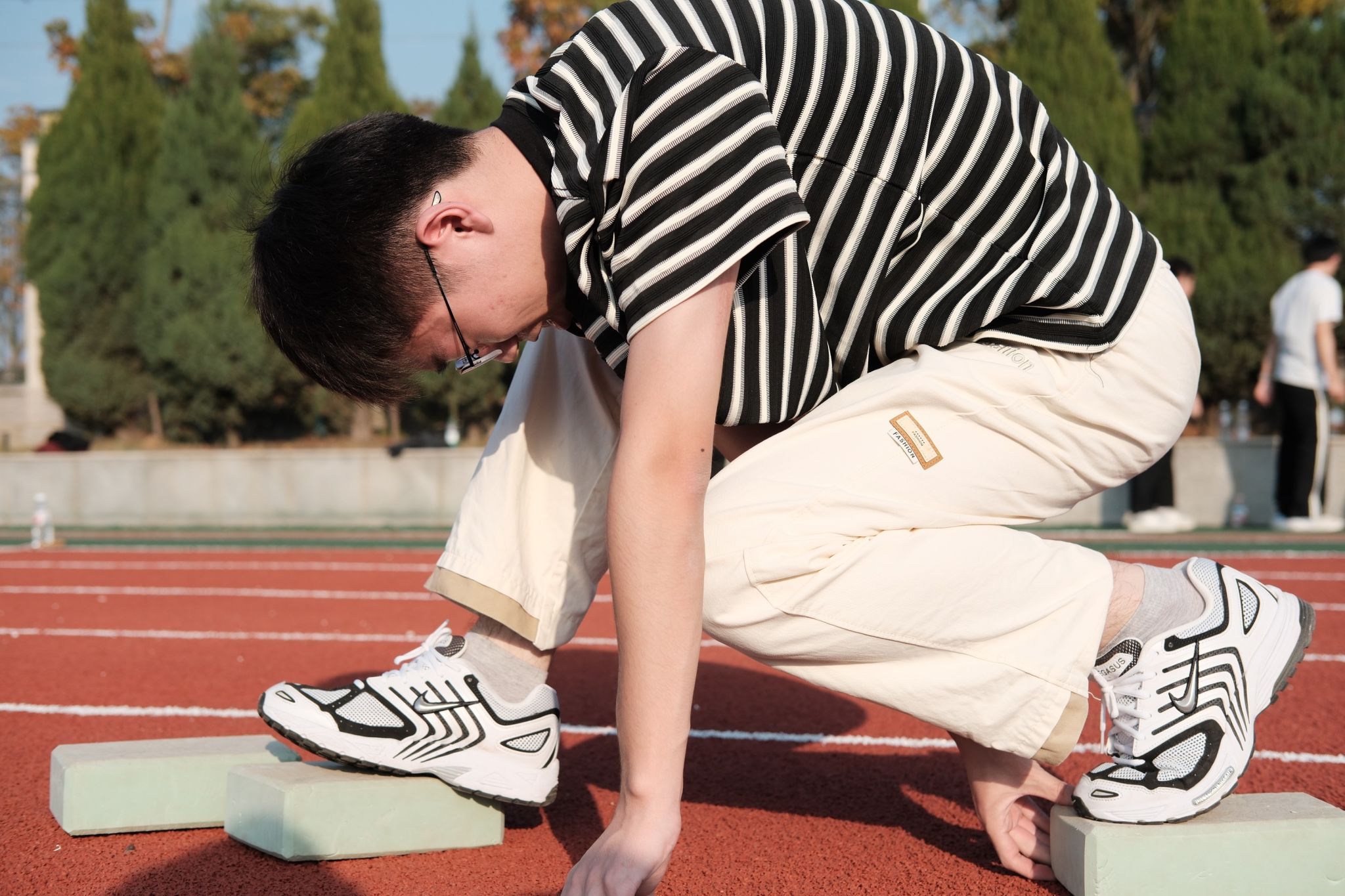随后进行两项比赛,再次将未来城校区操场上的欢笑与热情推向高潮。跳大绳的同学们脚步轻快、跃动有力,腾空的瞬间充满青春活力;而背靠背夹气球的同学们背靠背紧贴站立,稳稳夹住气球,互相支撑着向前谨慎移动,并在最后冲线的一瞬间挤爆气球,刹那间全场热烈欢呼,气氛和情绪已然到达了顶点。