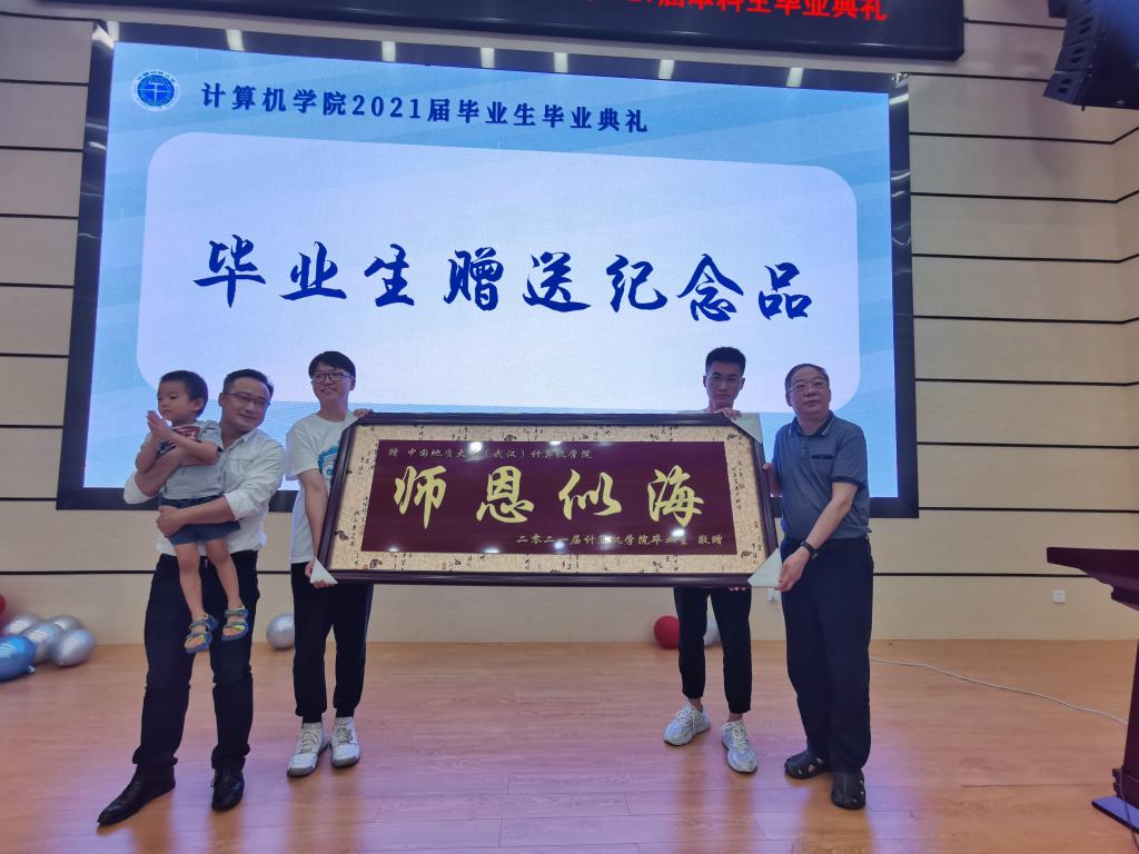 最后,由吕军和王力哲代表学院接受毕业生赠送的纪念品。