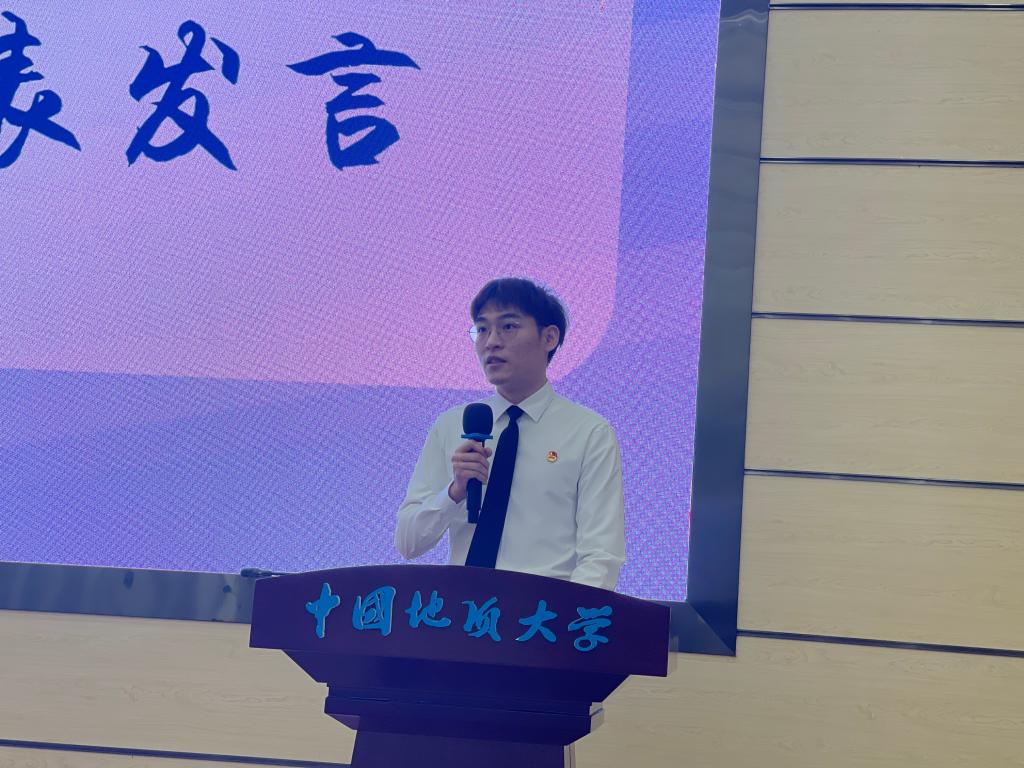 2020届学生会执行主席冯世元作为在校生代表发言,对学长学姐表示祝贺,也表达了对学长学姐的感谢与不舍。