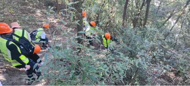 野外踏勘中同学们相互帮助下山