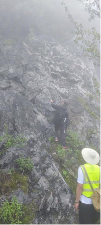 芝茅公路路线上汪校锋老师攀上岩壁做比例尺
