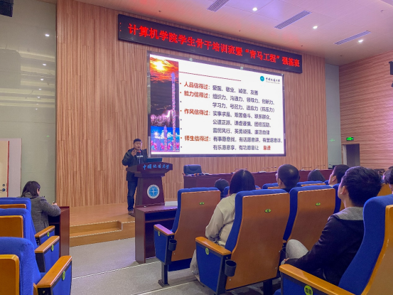 李国昌讲到,学生骨干要向党的干部标准看齐,做到品学兼优、以品为先。“作为一名学生骨干,为的就是人品信得过,能力信得过,作风信得过,师生信得过,总结起来就是一个词——‘靠谱‘”。他列举自己和身边的例子,表示学生骨干最终大多能成大才,担大任,以此勉励同学们服务他人、成就他人,担起更大责任,绽放更大光芒。