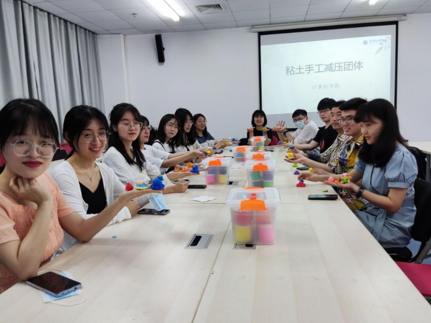 闫维蓉对于参加此次团体活动同学的到来表示欢迎,并给大家介绍了活动流程以及本次活动的意义。在闫维蓉的带领和鼓励下,现场气氛逐渐热烈起来。同学们在一番自我介绍后,纷纷说出了自己参加活动的“心声”——“临近毕业,希望带走一些属于地大的回忆”、“想拯救一下我的动手能力”、“想看一下我是否有手工天赋”、“平时学习、考研压力好大,希望能有一个放松的机会”等等,来自同学们对活动的期待传达到了活动室内的每一个角落。期待传达到闫维蓉处,她总结了同学们对活动的不同期待,希望同学们在“与粘土相伴”的时间里可以找到返璞归真的童趣,也希望大家在这段用双手来创作的时光能带给大家舒适和享受。