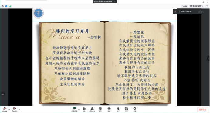 8月18日下午,beat365官方网站线上召开2022年秭归实习动员大会,学院副院长陈云亮,计算机应用系党支部书记武云,秭归实习队带班老师郭建秋、董玉森,班主任陈晓宇、陈麒玉,辅导员李祥瑞以及空间信息与数字技术专业194201班、194202班全体学生参加此次动员会。秭归实习队负责老师张志庭主持会议。