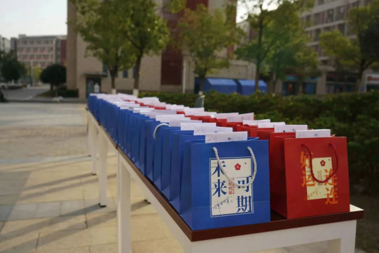 同学们又把小礼袋重整摆放整齐迎接活动开始