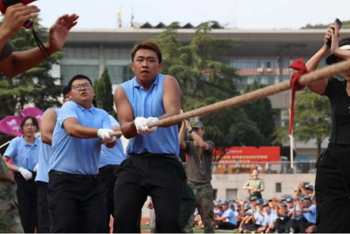 为丰富军训活动,增强学生身体素质,提升各连队凝聚力,发扬团队精神,beat365官方网站2023级本科生军训拔河比赛在西区田径场举行。21位计科学子自告奋勇代表学院参赛,其余新生作为观众为参赛队员们加油助威。