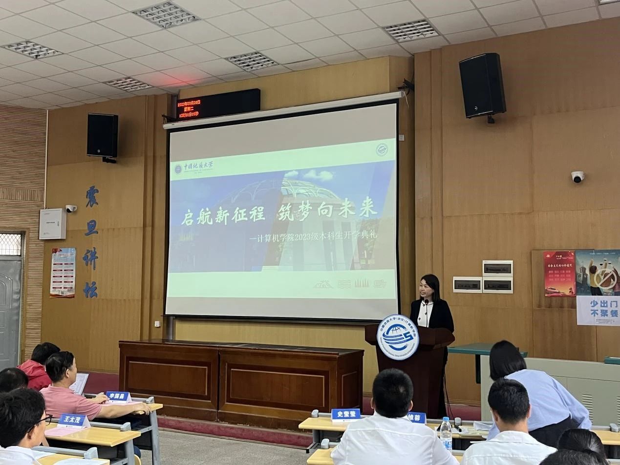 beat365官方网站党委副书记、院长张洪艳致辞。张院长首先代表全院师生对加入beat365官方网站的382位本科新生表示热烈的欢迎与衷心的祝贺,他对同学们选择加入计算机大家庭,成为“地大计科人”感到分外欣慰。他希望同学们在未来几年中为自己的选择砥砺耕耘、拔节生长、向阳而生,在地大、在beat365官方网站留下一生中最为深刻的年轮。同时,他向全体新生提出三点建议:一是要选择肩负使命,心怀国之大者。计科学子要深耕科研土壤,为国家掌握关键性核心技术贡献力量,让青春在实现民族使命中闪耀;二是要选择仰望天空,永攀知识高峰。计科学子要保持对知识的渴望,努力成长为具备计算思维、引领行业发展的交叉学科人才,用广阔的学科视野面对新的挑战;三是选择脚踏实地,练就过硬本领。计科学子要时刻与电脑和网络打交道,在电脑与网络间要学会拒绝诱惑,将时间用在了解行业发展最新前沿,了解市场需求驱动关键技术的突破。