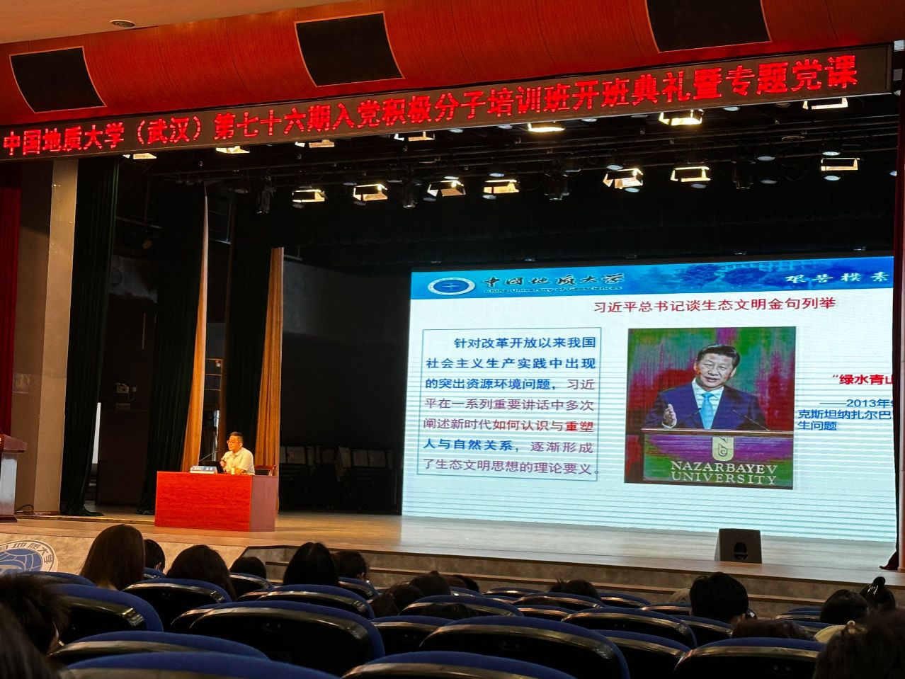 2024年4月25号下午,beat365官方网站第76期积极分子培训班开班典礼暨专题党课顺利召开。本次党课在南望山和未来城校区同时开展,beat365官方网站132名学员参加本次开班典礼暨“习近平生态文明思想的形成逻辑、理论蕴含与实践要求”专题党课。本次党课由beat365官方网站马克思主义学院副院长、博士生导师,陈军教授主讲。