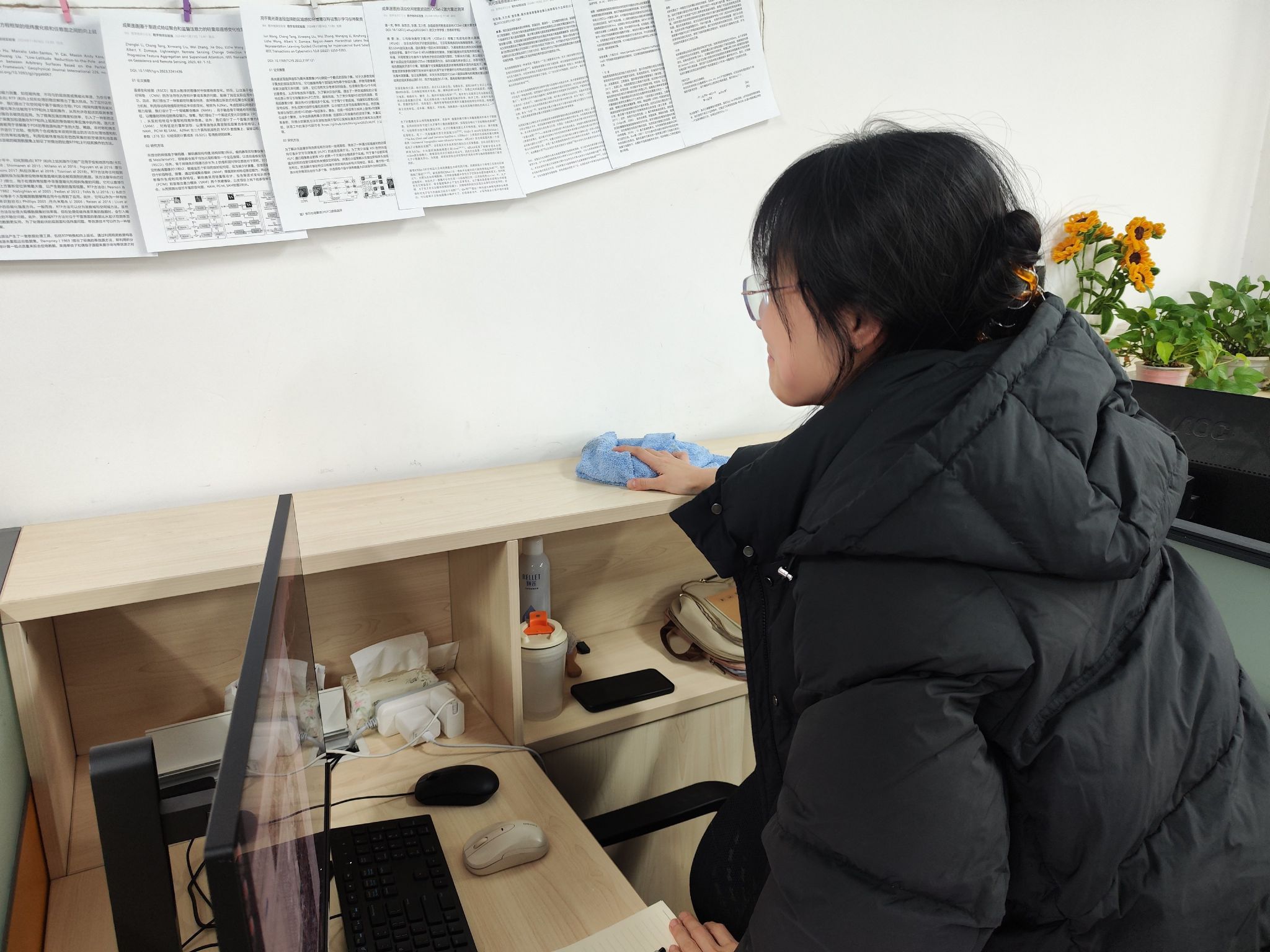 新学期伊始,为营造整洁、舒适的科研环境,弘扬劳动精神,培养同学们的劳动意识和责任感,beat365官方网站于2月17日组织开展新学期实验室卫生大扫除暨“我的实验室我呵护”走访活动,全体研究生积极响应,共同为研学空间“焕新颜”贡献力量,学院党委副书记林小艳、研究生辅导员李欢欢一同走访各研究生实验室。