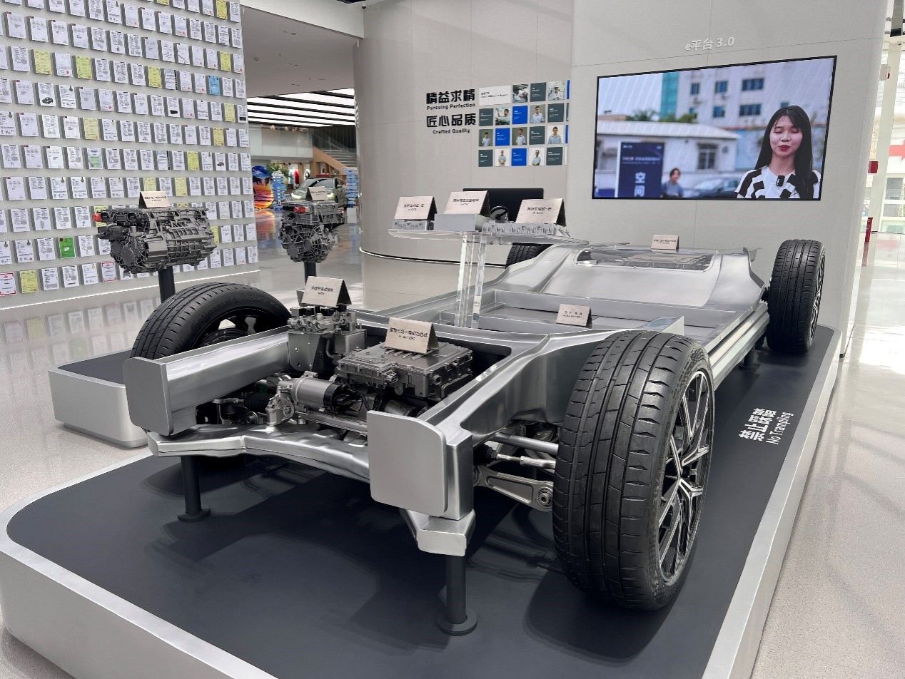比亚迪不仅是全球新能源汽车的领军企业,更在电池、新能源、轨道交通、电子代工等多个领域布局深远。讲解员向同学们介绍了比亚迪的刀片电池技术、云轨交通系统,以及其在全球市场的产业影响力,让同学们对比亚迪的全产业链布局有了更全面的认知。